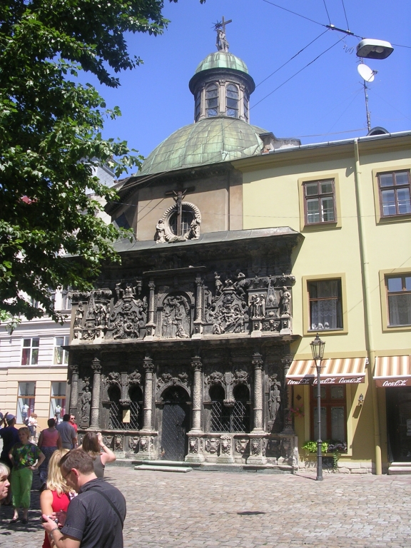 Удачно пристроив машину как-то на тротуаре, рядом с другими такими же, мы пошли осматривать Львов. Центр города оставил приятное впечатление. Здесь же купили гривн на туда и обратно по неплохому курсу (в центре города обменников столько, что глаза разбегаются, а курс обмена они предлагают самый разнообразный). |
