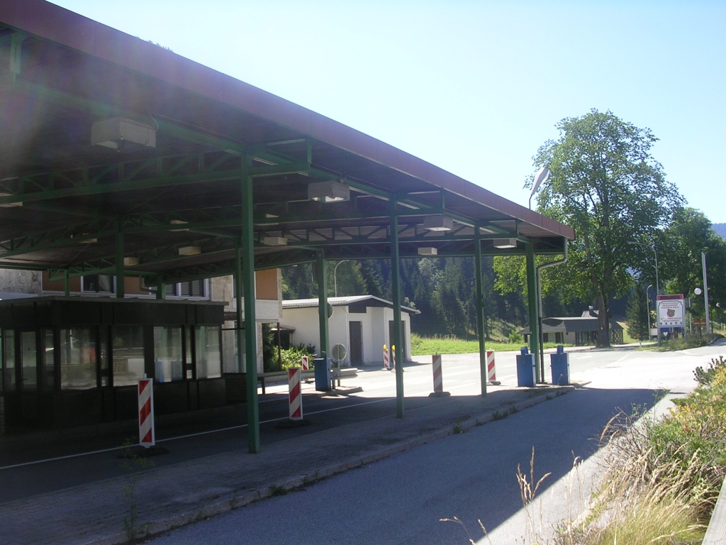 Оставили и свернули по направлению на Австрию. Кстати, и Италия здесь тоже была недалеко. Указатель на Австрию сопровождался пояснением, что туда можно только легковым и уклоны будут не слабые. И вправду, круто вверх, причем серпантина мало, а больше именно крутого и тяжелого для автомобиля подъема.