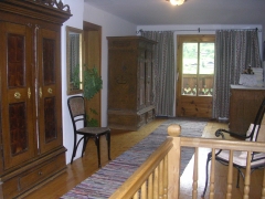 Живописная деревня из красивых домов, на почти каждом из которых было написано "Pansion", расположилась правее озера. Я еще зимой нашел здесь недорогое жилье, но потом как-то про это подзабыл и не забронировал. В Москве спохватился и послал запрос, но ответа не дождался. Уже дома, после поездки, я этот ответ прочитал - в нем было написано, что, к сожалению, свободных мест уже нет :). Но сейчас, не зная этого, мы начали искать этот самый пансион. По пути Марина забежала в какой-то из многих, но крутоватый с виду, места есть, но дорого, 75 евро за номер. Когда разворачивал колеса, трогаясь от пансиона, обратил внимание на резиновый противный скрип от правого переднего колеса, подумалось, что перегрелась резина на серпантинах. Нашли мы тот самый пансион, его хозяин, Логар Иванка вышел сам и, почесав затылок, сказал то, что я прочитал потом, вернувшись домой в емейле - мест нет. Покрутившись еще с полчаса и получив везде один и тот же результат, мы вернулись назад к озеру и пошли в туринфо. Здесь выбор был, но все тоже не слишком дешево. В результате нам все же подобрали пансион на 2-х взрослых и ребенка за 55 евро без завтрака и не в Старой Фужине, а в километрах трех, в деревушке Srednja vas v Bohinju. Теперь уже мы почесали затылок и согласились с этим вариантом. Немного с трудом, из пяти апартаментов, нашли наш, Stare Stanko. Хозяин нас ждал, между делом подстригая траву газонокосилкой. Сначала он обрадовался, а когда увидел вылезшего из машины ребенка, моего Илью, что-то загрустил. Оказалось, что в этом апартаменте кровать рассчитана на ребенка лет до 10-ти и наш никак в нее не в вписывался. Вошли, стали оценивать проблему. Номер, хоть и в полуподвале, но просторный, с кухней и всем, что нужно. Думали, думали, прикладывали к кровати стулья и какие-то подушки, и хозяева вдруг обрадовано начали трещать - матрас, матрас, правда на словенском :). |