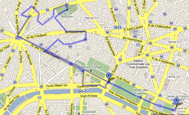 В этом году Марина была вооружена новым путеводителем "Прогулки по Парижу" Десмона и нам предстояло не просто ходить туда-сюда, а делать это осмысленно. И был выбран маршрут от Лувра через Елисейские поля к парку Монсо.