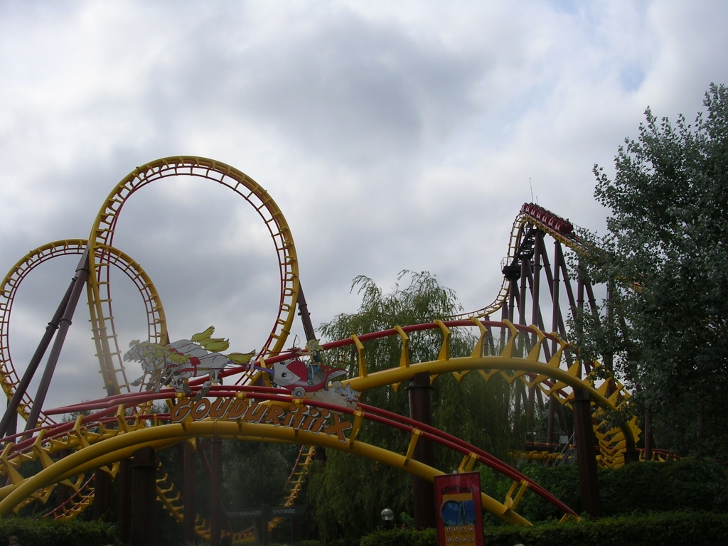 Дальше все как обычно, аллеи и аттракционы один за другим. Мы не стали ломать голову, а просто катались практически подряд на всем, что встречалось, за исключением совсем детских вариантов, потихоньку приближаясь к двум главным развлечениям. Это Goudurix, горка с 4-мя мертвыми петлями, напоминающая Дракона в Порт-Авентуре и Tonnere de Zeus (что-там от Зевса) - тоже горка с летящими под сумасшедшими наклонами вагончиками.