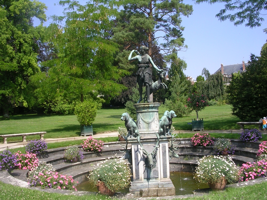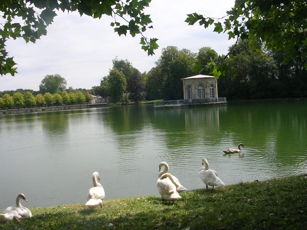 Сначала парадный вид центрального входа, потом тихий сад Дианы с белыми цесарками, потом пруд с огромными рыбинами и английским садом и, как венец всему, просто очень красивый парк с замечательными видами. Закончили осмотр парка и дворца у парадного входа и потом еще немного прошлись по городку, который тоже приятен и достаточно украшен цветами и клумбами.