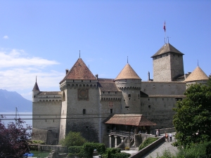 Из центра мы вернулись на машине назад и остановились возле замка или крепости Шильон (Château de Chillon). Замок очень красиво расположен на скале, соединенный с материком мостом и проехать мимо было нельзя.