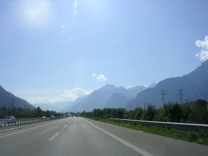 И сразу же мы выехали на автобан и поехали в г. Сьон (Sion). Что ж, это, наверное, самый красивый автобан из тех, по которым мы ездили. Ну может, хорватский еще в состоянии конкурировать с этим. Стрела асфальта, разрезающая величественные горы, очень впечатляет.