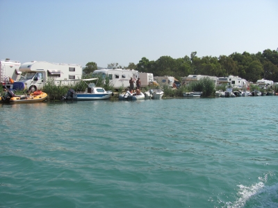 А затем мы мимо стойбища итальянских кемперов, который забили очень удобное для себя место (слева море, справа река) вернулись в реку и поплыли по ней.