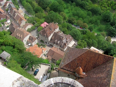 С обзорных площадок, нависающих над городом, рекой Дордонь и ущельем, открываются отличные виды во все стороны и на макушки нижних туристов.