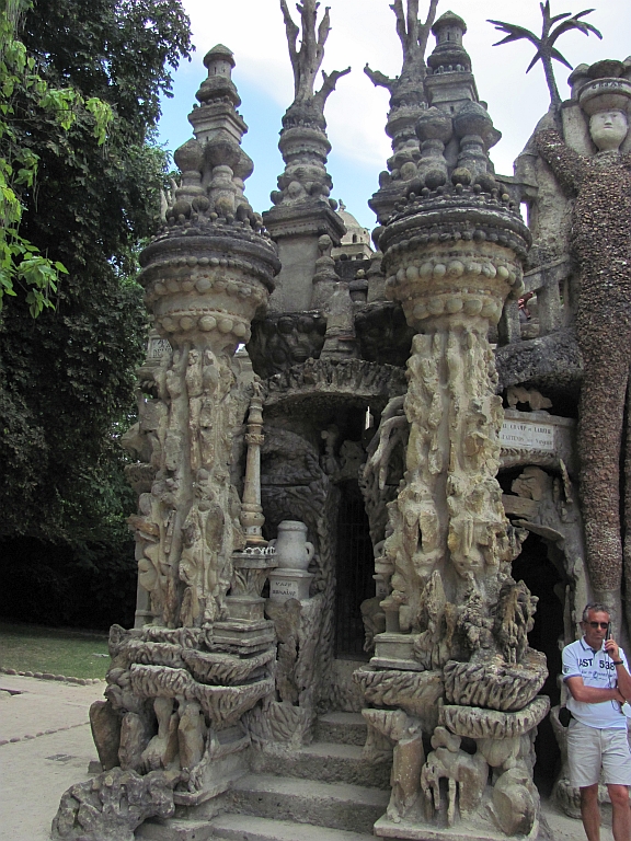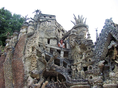 Жил себе и жил в позапрошлом веке в Отриве французский почтальон Фердинанд Шеваль (1836 г.р.), носил почту по деревням и было ему не о чем подумать и скучно, потому что ходил он по одним и тем же дорогам. И тогда он стал думать о том, что вот закончит носить почту, выйдет на пенсию и у него будет куча времени и пенсионных денег. И появилась идея создать идеальный дом, а лучше дворец. Процесс зарождения идеи описал сам Шеваль в мемуарах. Как-то, идя с очередной почтой, он споткнулся и упал. Когда посмотрел, обо что он споткнулся, то увидел камень причудливой формы. И тогда он подумал, что если природа может сделать такие формы, то почему этого не сможет человек разумный, т.е. он. И начал тогда почтальон собирать по округе интересные камни и они постепенно и вывели его на мысль создать из них сооружение, которое бы подчеркивало неповторимость их форм. А поскольку никто не сможет понять, каким почтальон понимает этот идеальный дворец, то сделать его он решил собственноручно из головы и из местных материалов - камней и цемента. Т.е. проект вынуть из головы, а материал из окружающей природы. Задумано - сделано. С 1879 года до 1912 строил Шеваль свой дворец. И когда построил, то оказалось, что Шеваль совсем не почтальон, а художник. И еще 12 лет потом Фердинанд любовался на свое творение и понемногу его улучшал. Пока не умер в 1924-и году, предварительно успев создать для себя соответствующую дворцу усыпальницу на местном кладбище.