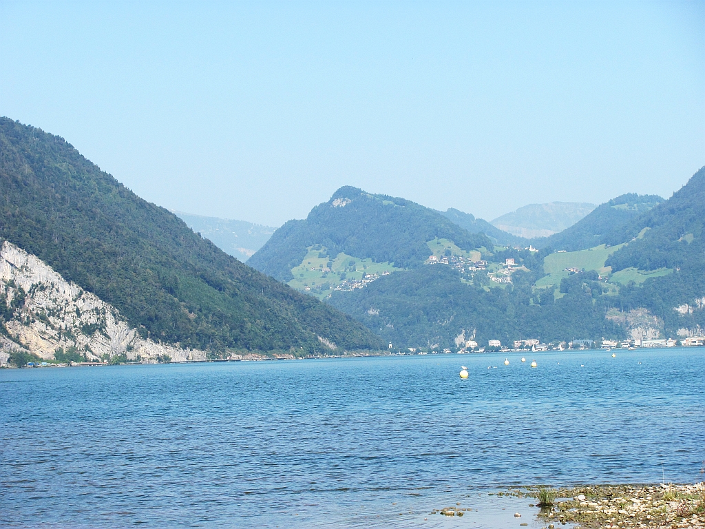 Но тут нас осеняет. Alpnachstad, а вместе с ним и мы, находится на берегу красивого озера, извиняюсь, Альпнахерзее :) (Alpnachersee). А почему бы нам не покупаться, в конце концов. Может быть, хоть это будет не столь дорого? Только как попасть на берег, пригодный для купания? И я, увидев какую-то узенькую дорожку, проходившую в тоннель под трассой в сторону озера, поехал туда, потом по направлению на эллинг. И там мы увидели людей, расхаживающих с купальными полотенцами. Ага, правильное направление.