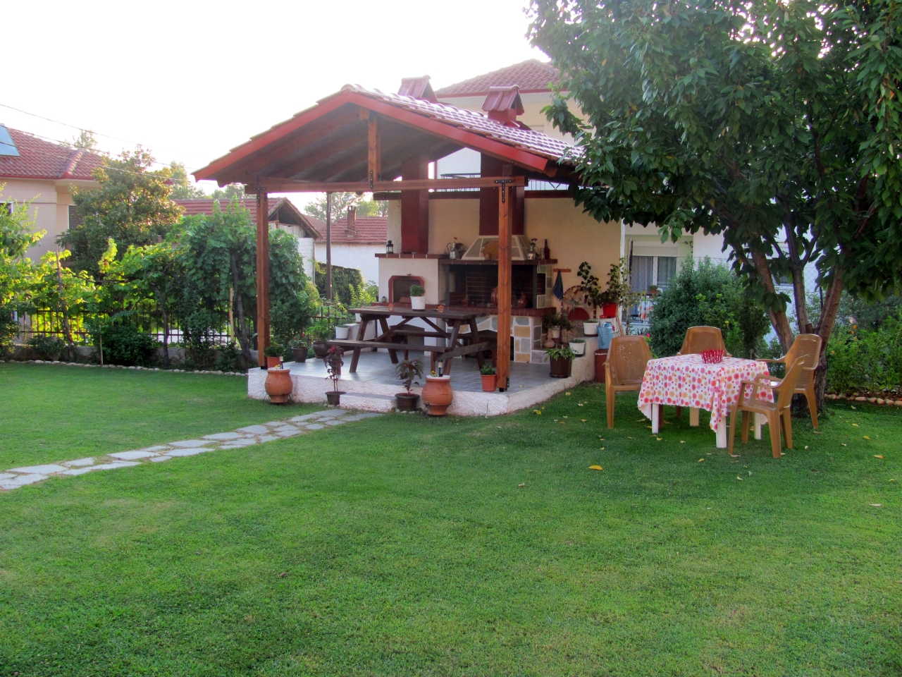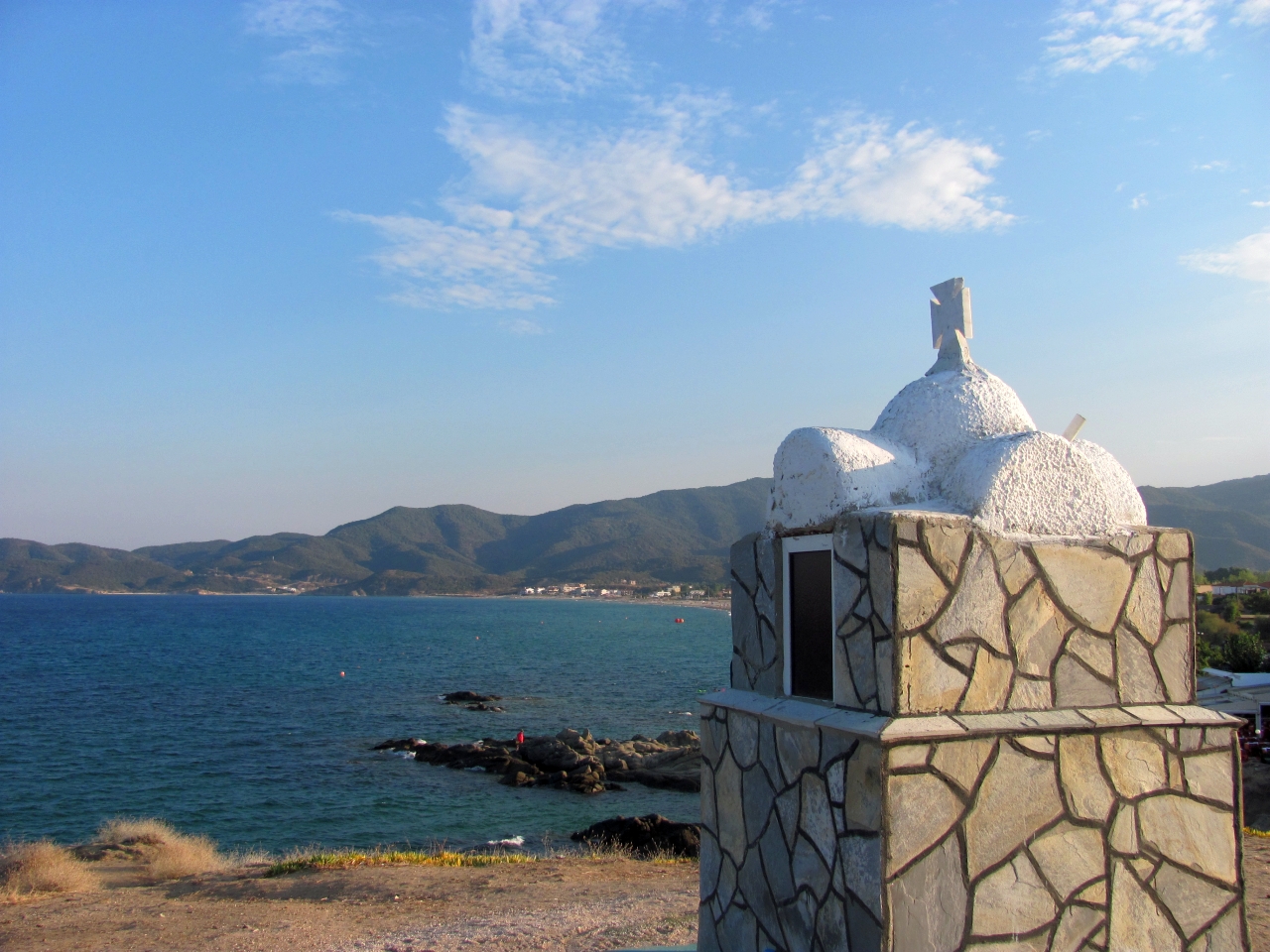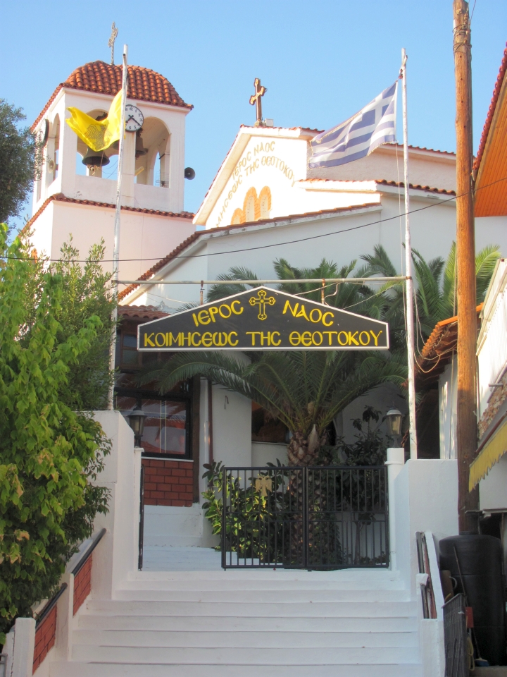 Как-то, возвращаясь из очередной прогулки, мы увидели на нашем крыльце пару. Мужчина с дочкой лет 16-ти. Они с нами поздоровались по-русски и назвали наши имена. И сами представились. Это автопутешественник из Тольятти Вадим забрал свою дочку из лагеря обучения и отдыха в Болгарии, приехал с ней в Грецию для продолжения отдыха. И они после очередной прогулки по Халкидикам и поездки в Салоники заехали к нам в Сарти познакомиться поближе. Потом их путь был в Метеоры и домой, через Болгарию. Это мы выяснили во время нашего разговора на лоджии. А машина Вадима, кстати ВАЗ 2111, стояла на нашей улице.