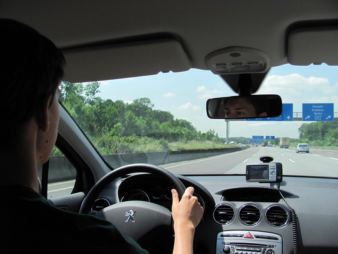 Когда мы выехали на автобан, за руль попросился Илья. Ему хотелось немного погонять на дорогах без ограничения скорости, почувствовать драйв. Я ему руль с удовольствием уступил, усевшись на заднее сиденье. А что, хорошо здесь и удобно. Знай себе, крути головой туда сюда, да разглядывай окрестности. Ну конечно, немного поглядывал на дорожную обстановку и реакцию на нее сына, а как же :).