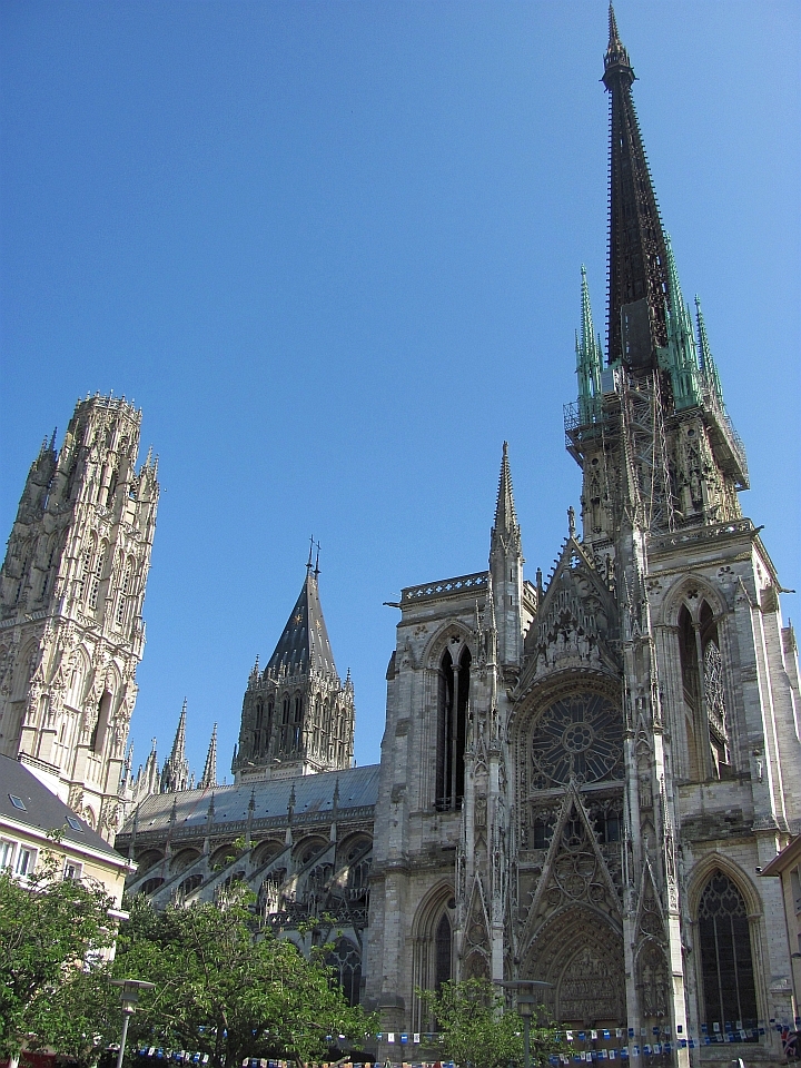 Утром сразу поехали в Руан. Немного потолкались в пробке на набережной, потом свернули на центр и там, не долго думая, засунули машину в подземный паркинг. Такого типа парковки (с шлагбаумом), конечно, предпочтительнее уличных, когда не знаешь, сколько времени придется потратить.