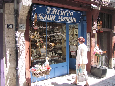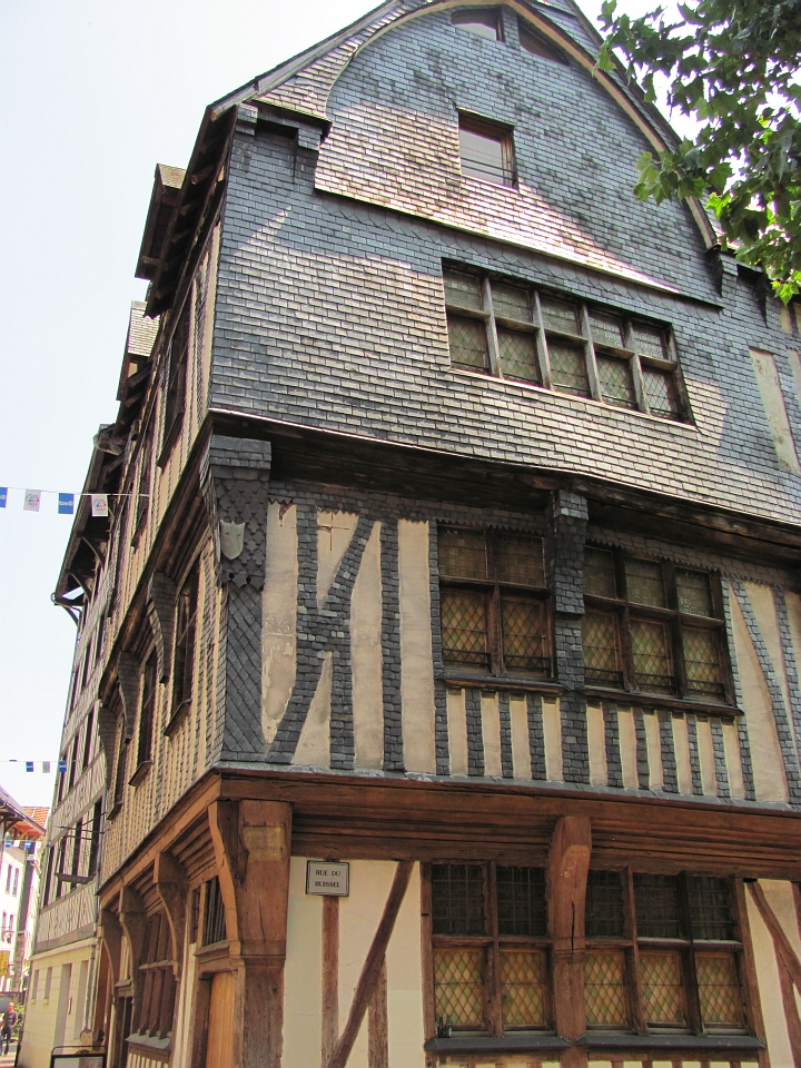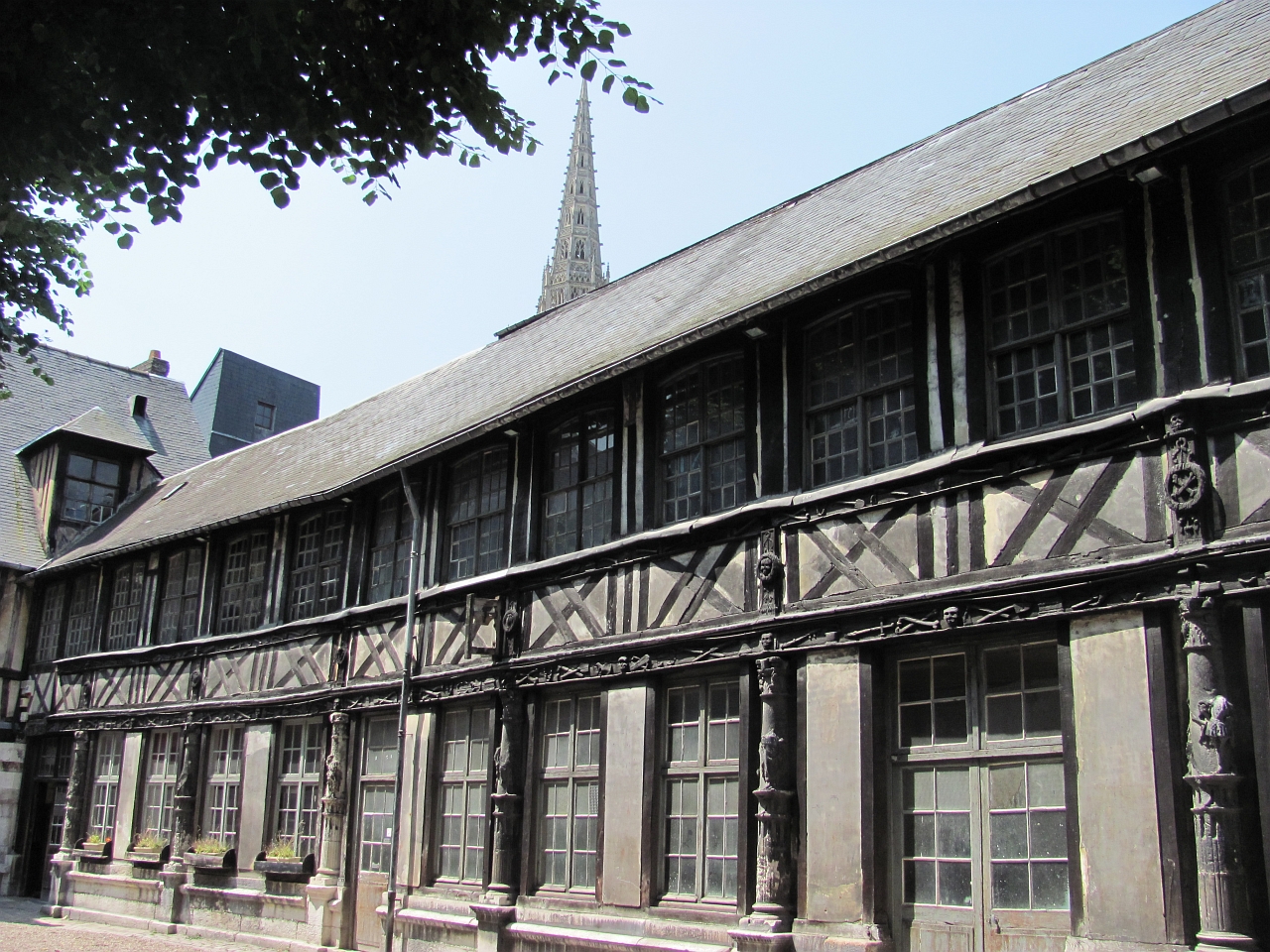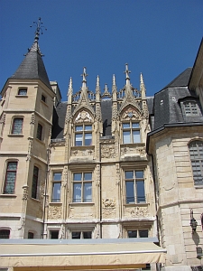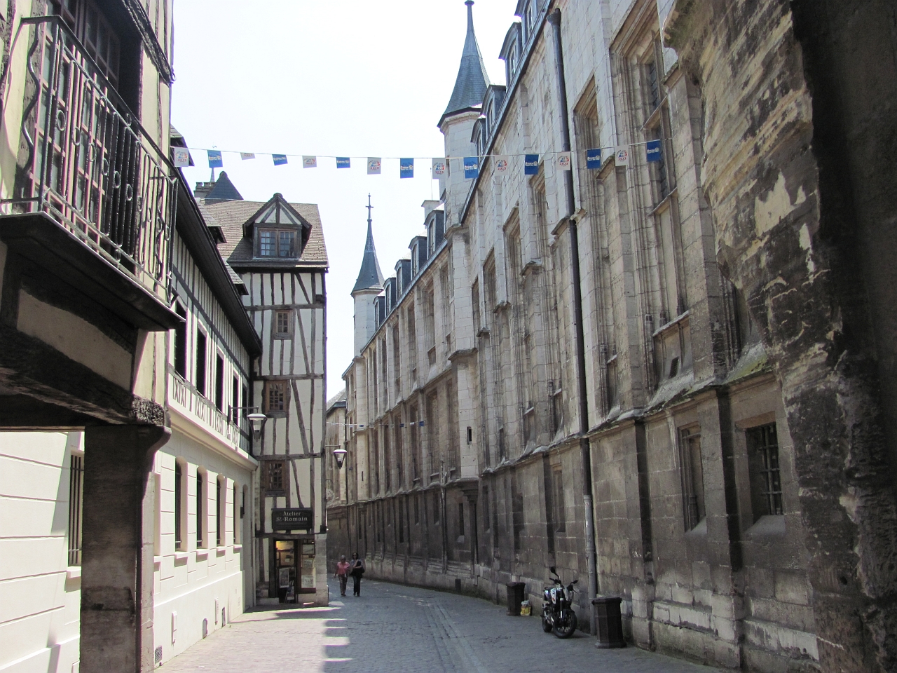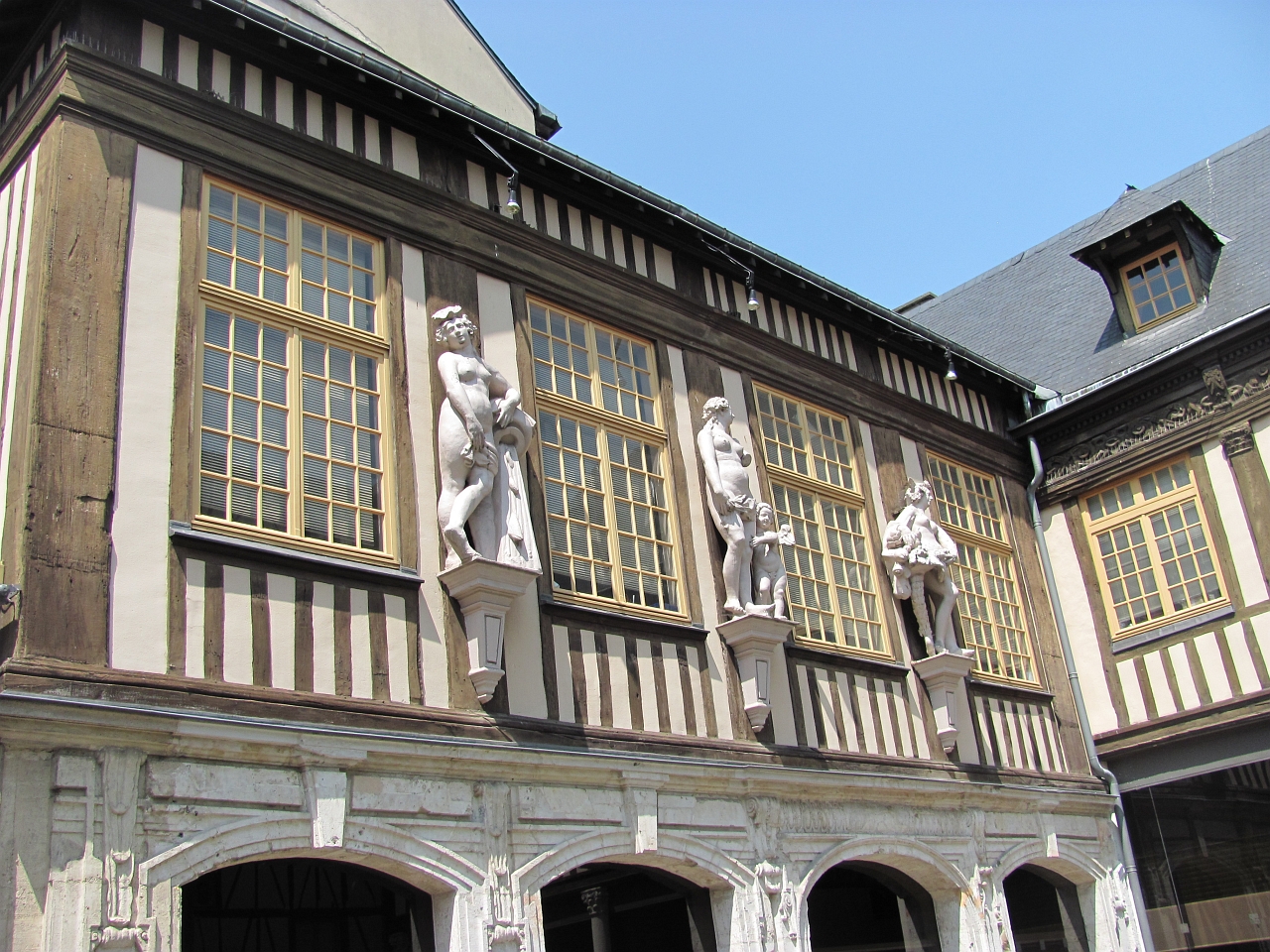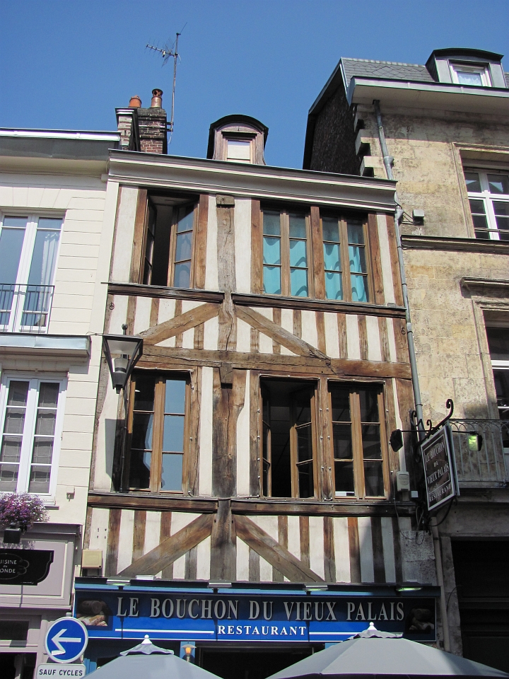 Потом прошли мимо великолепного Парламента Нормандии и Королевского дворца и попали в засоборные великолепные улочки с аутентичными магазинчиками и кафе, да еще там и два самых известных фахверковых дома Руана |
