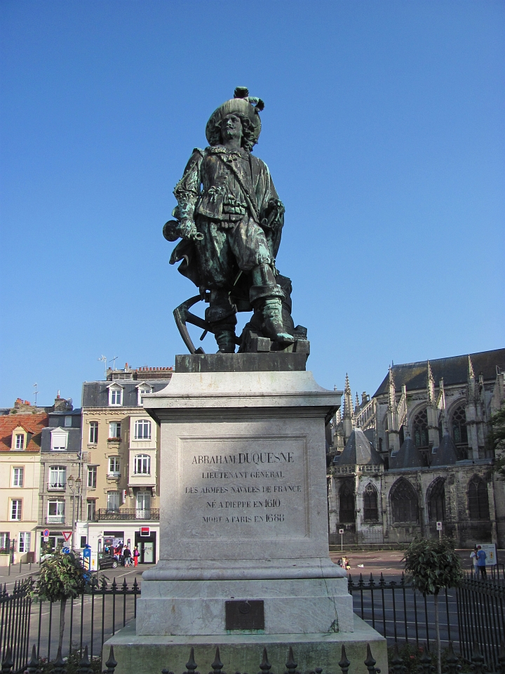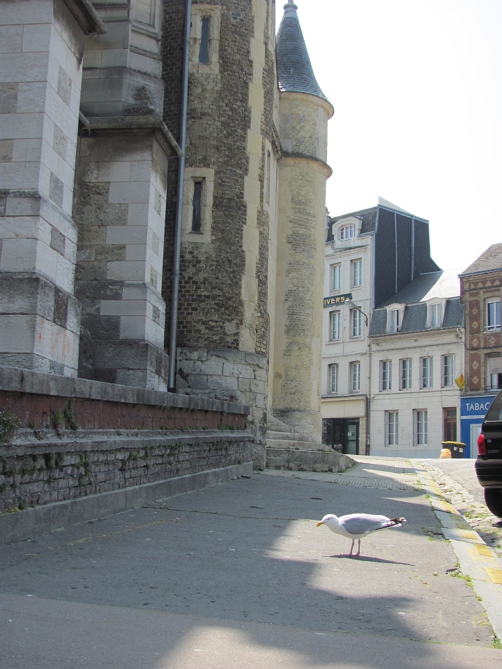 А потом мы поехали дальше в г.Дьеп (Dieppe). Как-то так вышло, что нам пришлось немного в городе покрутиться. Он готовился к грядущему празднику и многое было для автомобилей закрыто. Поэтому мы проехали его весь, вывалились на набережную и поехали, любуясь красивыми отелями. А потом я нырнул в узкую улочку направлением на центр и надо же - там как раз отличное место для нашего лайнера, крайнее перед проездом во двор, парковаться удобно. И до центра оказалось совсем рядом. Две старинные церкви 12-го и 13-го веков, приятная пешеходная улица и господствующий над городом внушительный замок - таким Дьепп остался в нашей памяти.