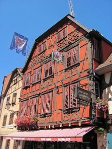 Погода с утра нам сказала, что все будет хорошо, только, может, немного жарковато. Солнце светило вовсю, на небе ни облачка и после завтрака и расплаты мы покатили гулять по первому из двух выбранных городков. Первым в силу удаленности был Кайзерсберг (Kaysersberg). До него от нашего отеля 7 км. Мы, естественно, поехали направлением на центр и прямо около самого первого нарядного домика нам попалась большая парковка. Честно говоря, туда же нас настойчиво направляли указатели. Мне почему-то сегодня не хотелось искать каких-то вариантов и я поставил машину на парковку, оплатив весь день. Там меньше было нельзя. Но стоимость что-то около 2-х евро за день решило все вопросы. |