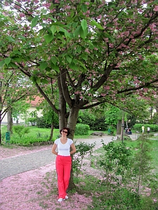 Я заранее поставил цель навигатору - центр и он привез нас на площадь с памятником Т.Шевченко и "садом" из пасхальных деревьев. Машину поставили тут же, в какой-то улочке. Памятник обычный, а вот деревья эти доставили нам немало интересного и очень понравились. Находившись по саду и налюбовавшись чудесами народного (детского?) творчества, мы по розовой аллее, усаженной красиво цветущей сакурой (да, в начале прошлого века в Ужгороде было посажено около тысячи таких деревьев и они очень украшают город) и по их лепесткам, окрасившим розовым цветом практически весь асфальт, прошлись по городу и пришли в его исторический центр. Здесь я у продавца магазина батареек (понадобились батарейки для фотоаппарата) спросил, что тут можно интересного посмотреть и он, выйдя на улицу, минут пятнадцать мне перечислял огромное количество местных достопримечательностей, но я ничего не запомнил и мы просто пошли в ту сторону, в которую он показывал рукой :).
