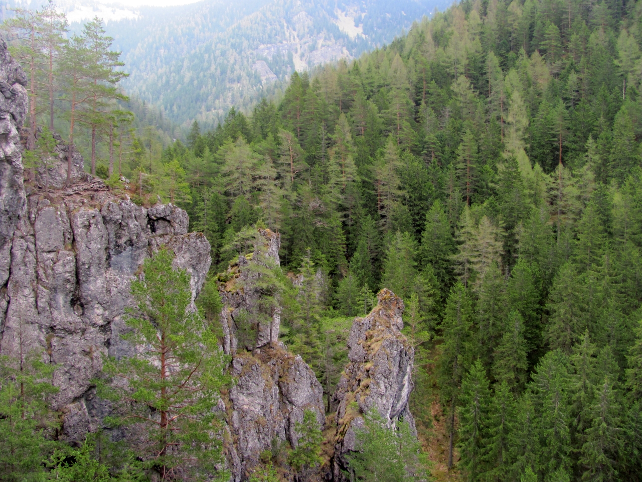 Мы увидели издалека причудливое нагромождение скал и я сказал - эх, как бы туда попасть. Сказал и забыл. А сейчас мы ехали долиной и увидели , что вдоль реки тянется дорожка, по которой идут группки туристов. И решили, что погулять здесь в соснах будет совсем не вредно.