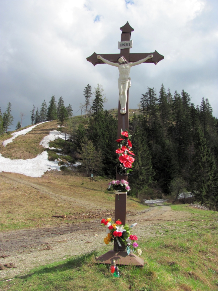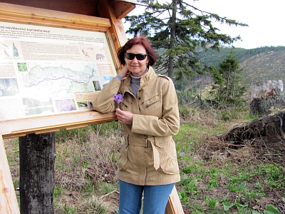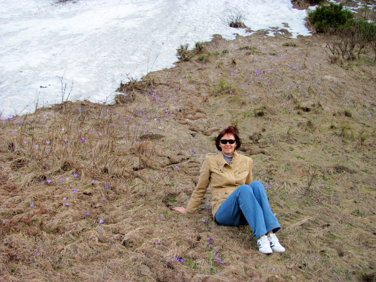 В результате просто по дорожке потихоньку поднялись на седловину Sedlo za Lenivou на высоте 1378 метров, полюбовались видами и цветущим то тут, то там горным шафраном , поиграли в снежки и подышали воздухом.
