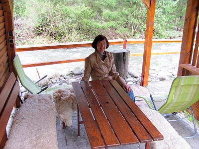 А потом мы побрели потихоньку домой, идти от калибы до дома порядка 300 метров. Еще немного посидели у реки в нашем дворе на скамейках, покрытых толстыми и теплыми овечьими шкурами и в дом.