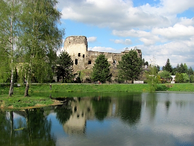 Здесь тоже не много объектов. Скала надо поселком (Skalka), на которую можно залезть, перед ней озерко со скульптурной группкой посередине, и закрытый от посещения замок, вернее, его развалины.