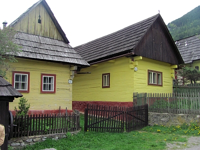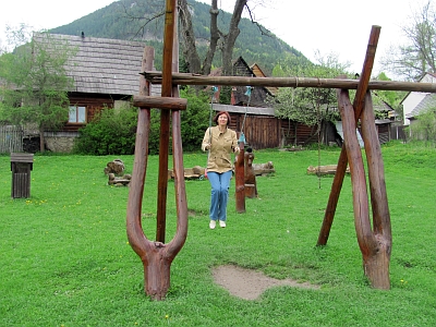Сегодня понедельник и тут практически никого - пара старушек у входа в музеи, мы и пара десятков словацких младших школьников, приехавших на экскурсию и пытавшихся устроить запруду в деревенском ручье откуда-то притащенными камнями.
