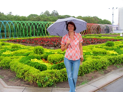 А когда вышли из метро, то поняли, что Москва реально большая. В этом районе совсем другая погода, тучи, ветер и температура явно падает. Особенно на мосту. А когда подошли к входу в парк, то уже и дождь пошел. Где ж ты, мой зонт, и жилетка, ты где ж :(....