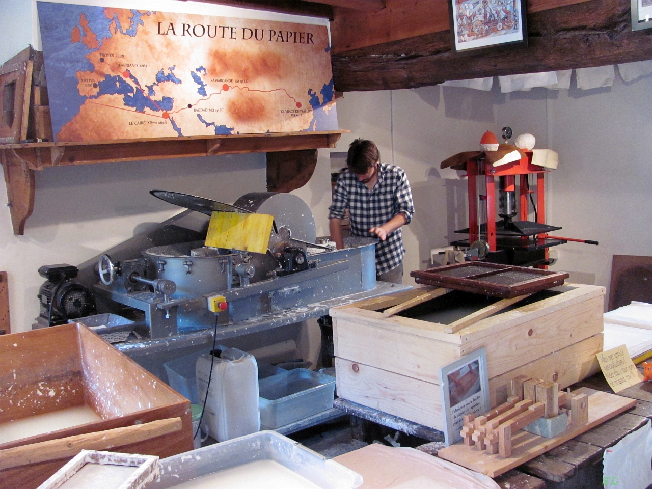 Зашли в мастерскую бумаги, молодой парень делал бумагу вручную, не особо обращая