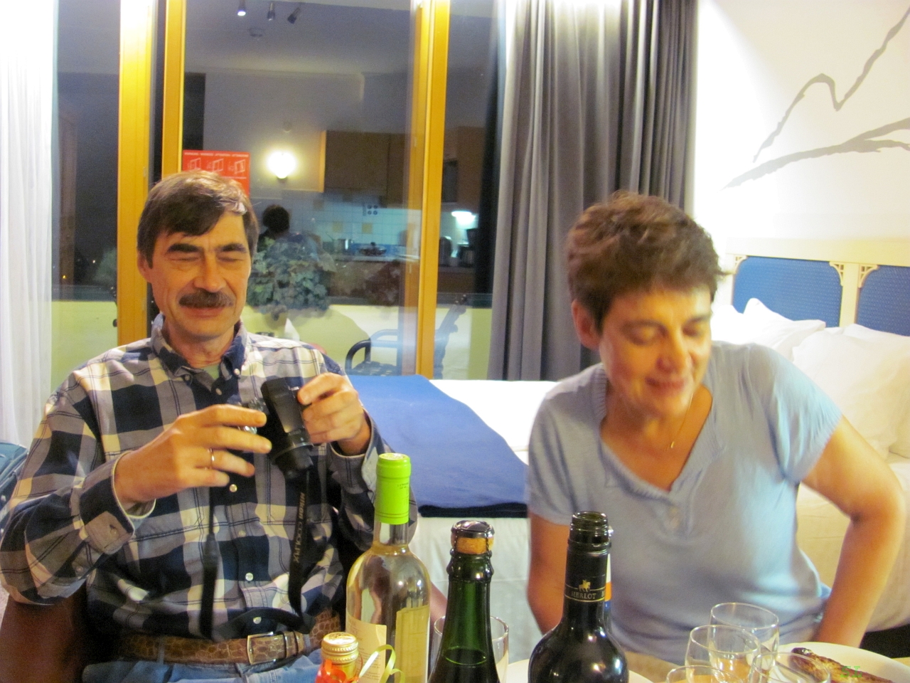 Честно говоря, эта встреча давно готовилась, в 2009-м году мы немного разминулись в Париже, на денек всего. Потом смогли в 2013-м году на встречных курсах в Венгрии не разъехаться, а даже поболтать минут 5, при этом забыв расчехлить фотоаппараты. Теперь же, когда Николай планировал свою поездку, то в нашем общении на эту тему нарисовалась возможность еще одной встречи, уже подольше. Он увидел, что мы зацепили себе акционное жилье в Шладминге и это место вполне подходило ему по маршруту. Только мы уже возвращались, а он свою поездку начинал. И Комаровы тоже успели схватить в "нашем" отеле для себя номер-студию, такую же как у нас с Мариной.