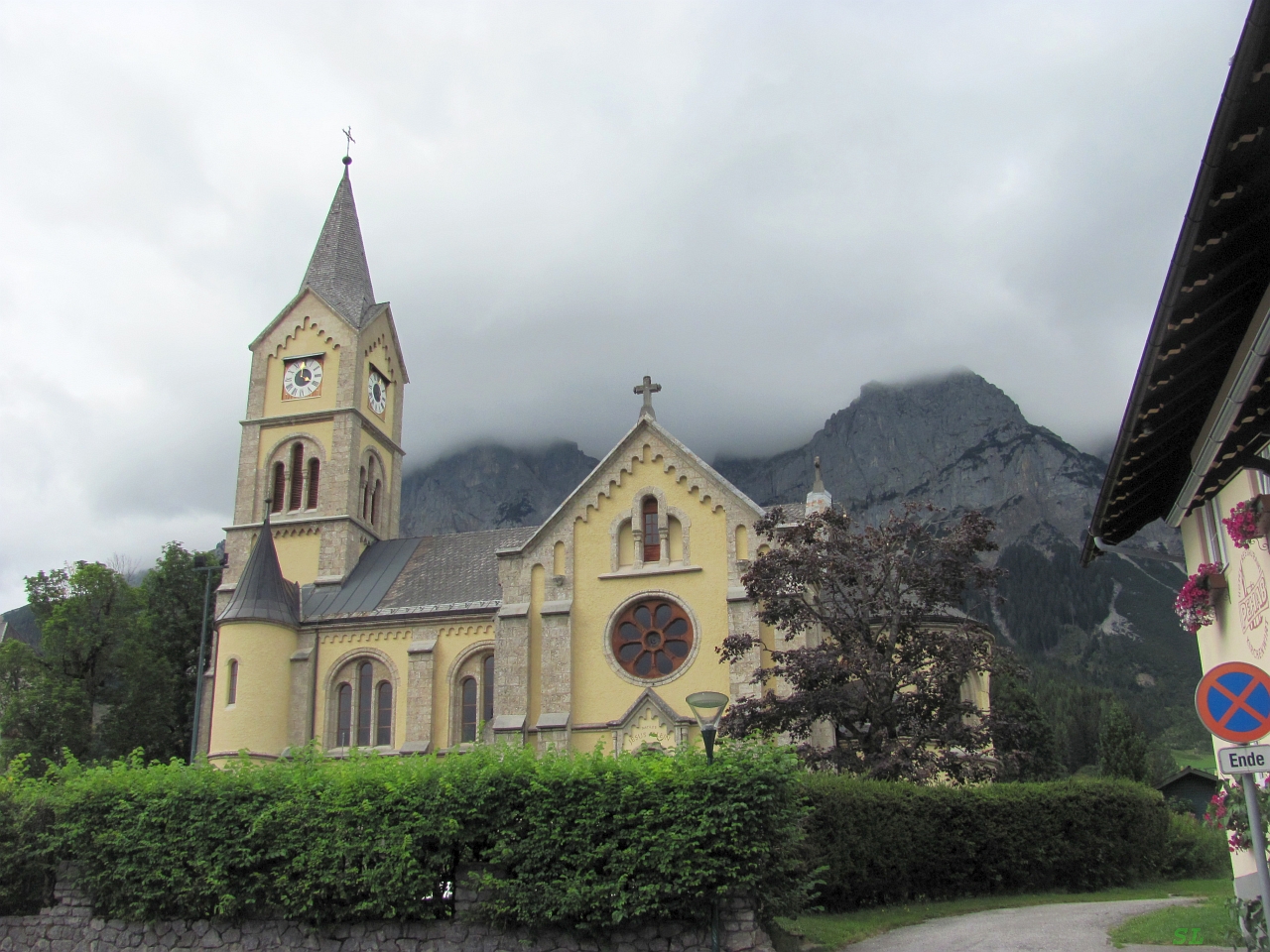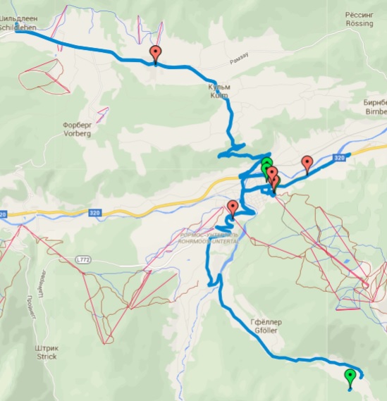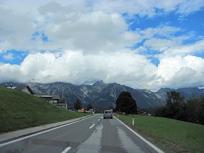 Вернулись к Шпару, Комаровых нет, на SMS не отвечают, и мы решили сгонять к подъемнику на Дахштайн, потому что из туч временами просматривались горные пики. Написали смс и поехали.