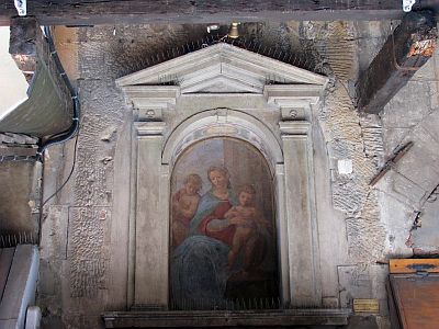 Оттуда мимо Университета как-то сразу вышли на площадь Св.Благовещения или Площадь Святой Аннунциаты (Piazza della Santissima Annunziata) с фонтаном, из которого я с удовольствием напился прохладной воды. Но вход в одноименную церковь почему-то был закрыт, я так понимаю - из-за воскресенья. Но это нам не помешало, скрываясь в тени ее коридоров, полюбоваться снаружи тем, что не скрыто реставрацией.