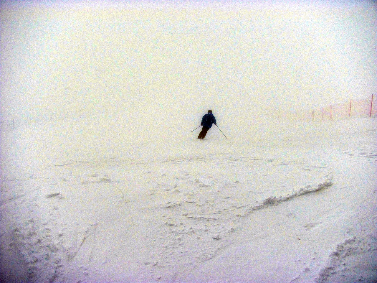 видимость и метель. Лыжники и сноубордисты одевали на ноги свои лыжи и