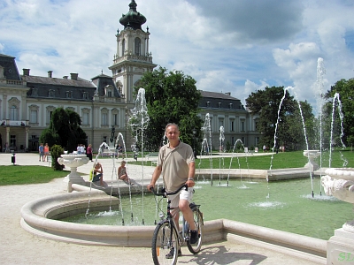 Дорожка оказалась вполне приятной, сначала около озера, потом надо пересечь шоссе на переходе и потом она уходит мимо кемпинга прямой стрелой в лес. Правда, для нас она сначала была узковатой и я первый день боялся врезаться во встречных велосипедистов, при это руль начинал как-то странно вилять и почему-то велосипед тянуло на этого встречного :). Но потом я стал смотреть на колесо и встречных не замечал :). Наверное, так же и Марина, при этом она, видимо, в силу своего более легкого велосипеда, укатывала вперед и я все время боялся ее потерять. Но это все не умаляло удовольствия от подзабытого и поэтому дающие новые впечатления способа передвижения. Да, конечно, совсем небольшой подъем заставлял после нескольких метров борьбы переходить на пешеходный режим, но с горки мы летели со свистом. Ну или так нам казалось :). И скоро мы уже подкатили к дворцу Фештетичей в Кестхее, гордо прошлись по его парадному двору с велосипедами в руках, пристроили велосипеды на велопарковку (это, кстати, здесь дело непростое - мест мало и лучше парковать велосипед в нескольких метрах от дворца на пешеходной улице - там как раз рамок для парковки и пристегивания велосипеда полно). В прошлом году нам не удалось как следует посмотреть этот дворец в виду ремонта его окружающей территории, теперь же здесь все вылизано, цветники цветут, фонтаны фонтанируют, народ на все это дивится. Еще раньше, в 2006-м году мы коротко осматривали дворец только снаружи, поэтому сегодня наконец-таки решили осчастливить себя посещением дворца изнутри, поэтому постояли минут 15 в очереди в кассу и за 5000 форинтов купили входные билеты. Я не буду утомлять вас описаниями его залов, которые как и положено замкам или дворцам следовали чередой друг за другом, хочу только заметить, что дворец принадлежал графскому роду Фештетичей и был построен в середине 18-го века Криштофом Фештетичем по образу французских дворцов или замков после того, как Фештетичи купили весь городок. Влияние французской и английской культуры явно ощущается в архитектуре и убранстве дворца и устройстве его парка. Особое впечатление производит огромная библиотека дворца с огромным количеством книг (около 52 000 томов), многие из которых являются раритетами. И еще нам понравилось на смотровой башне дворца. Честно говоря, мы видимо попали туда незаконно - вход на винтовую лестницу башни в центре одного из залов был как-то неуверенно загорожен стойкой с табличкой, на которой было что-то написано по-венгерски. Или стойка с табличкой просто стояла рядом с входом? Может быть, на ней было написано "Не влезай! Убьет", а может - "Продолжение осмотра", а поскольку мы венгерский так и не научились понимать, то решили трактовать ситуацию в свою пользу, просочились мимо таблички, поднялись по лестнице и в полной мере насладились замечательными видами Кестхея с высоты башни. А когда спустились обратно вниз в зал, то к стойке с табличкой подошёл молодой парень с бейджиком и загородил ей вход на лестницу поплотнее :). Но нам вежливый венгр ничего не сказал... |