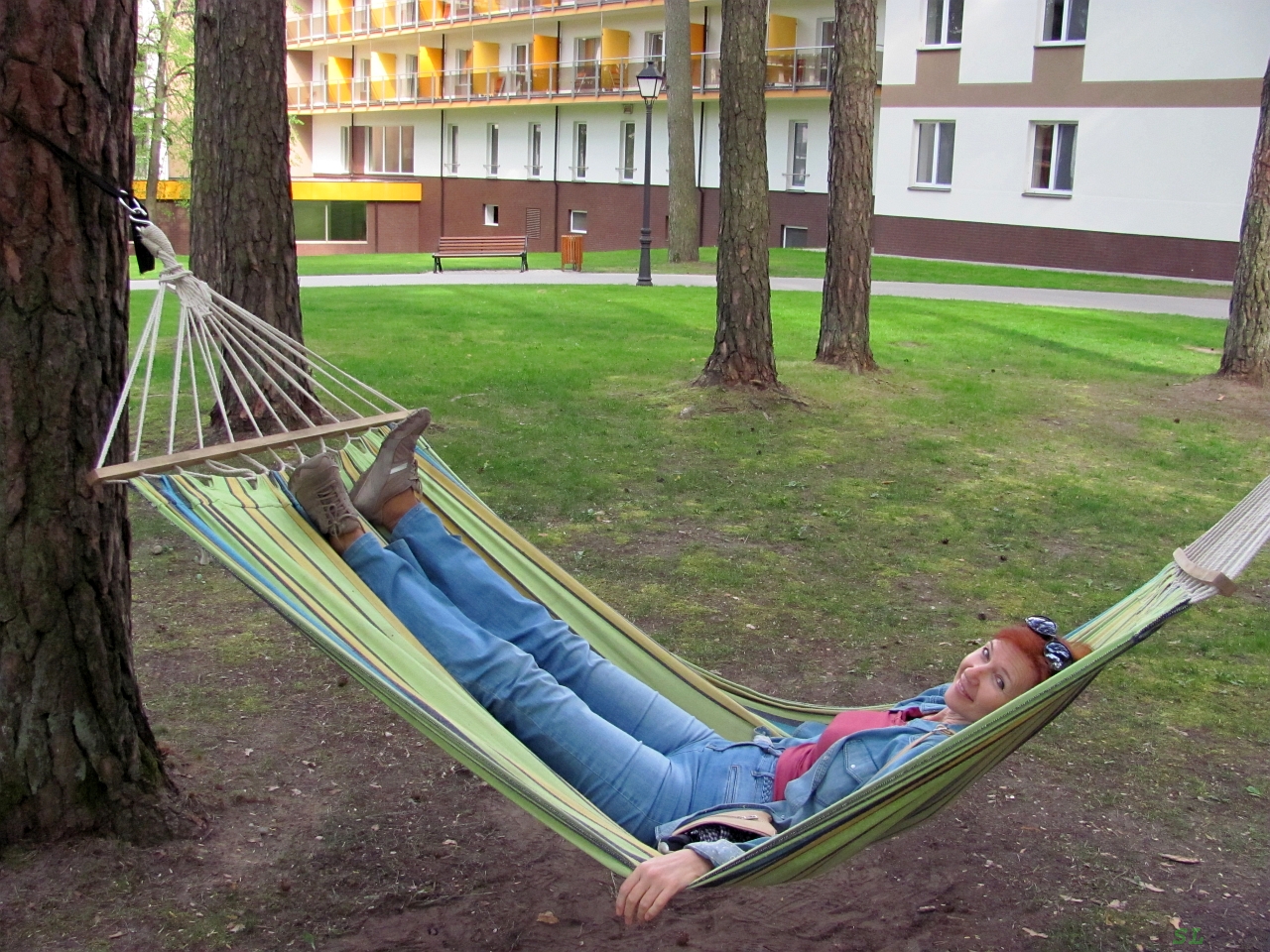Дорога от Тракая до Бирштонаса, пусть и не очень широкая, но гладенькая и живописная, вокруг леса и озёра, едешь и отдыхаешь. И поэтому не успел я накататься, как вот уже мы заехали в сосны маленького поселка. Вот тут проблем с парковкой нет, поставили машину там, где понравилось, никаких запретов или паркоматов не увидели. Вот уж этот городок или поселок ну совершенно лечебно-курортный. Сосны, в соснах корпуса, между корпусами неторопливо ходя люди и медленно и почти бесшумно ездят машины. Мы вышли на Неман (Нямунас), он течет спокойно и широко, по берегу проложена отличная дорожка, по которой хочется гулять или кататься на велосипеде, трава на берегу аккуратно скошена и меня сразу же потянуло походить по ней босиком. Потом прошли через большой и ухоженный городской парк. Перед корпусом местного санатория Egle бювет со свободным доступом. Внутри стеклянного куба два крана, из одного течет холодная вода, из другого очень теплая. Я попробовал и той и другой, совсем не вкусно, своеобразный запах, а главное, она сильно горчит. Марина вообще не смогла сделать больше одного глотка. Недалеко от бювета устроен ингаляторий на открытом месте - интересное кольцевое сооружение из корней с лабиринтом внутри, в середине кольца фонтанчиком течет та же вода и каким-то способом внутри кольца и лабиринта создается полезный, вроде как подсоленный воздух. Походили, подышали, посидели у фонтанчика и снова подышали :). Вообще-то у меня была идея после прогулки посетить местный спа-комплекс, расслабиться окончательно, ну и проверить, что за термы в Литве и мы даже зашли туда. Но как оказалось, в будние дни комплекс работает с 18 часов и это было для нас поздновато. Посмотрели на бассейны через стеклянную стену, я вздохнул и мы собрались домой. Перед отъездом я налил на всякий случай водички из бювета в 1.5 литровую бутылку. Наперед скажу, что осилил потом выпить бирштонасовки только пару раз по полстакана, а остальное потом вылил и бутылку выкинул, не сдюжил. До сих пор жалею :). Собственно на этом вся прогулка закончилась, день получился очень приятным и, наверное, полезным. Нам осталось проехать около 30 км до Каунаса, что мы и сделали незаметно для себя. |