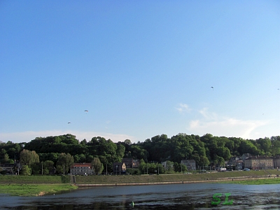 довольно сильный ветер и в небе над рекой появились дельтапланы. Когда мы заселялись в отель, дежурная нам сказала, что на крыше отеля есть панорамный бар. Сегодня оттуда звучала живая музыка и мы поднялись посмотреть. что там. Ну да, панорамный вид присутствовал, примерно как с крыши костела Воскрешения Христова, только подъем сюда на лифте бесплатный :). На этом знакомство с Каунасом закончилось. Город нам понравился. |
