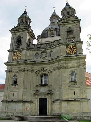 Но на прощание мы хотели посмотреть еще один, расположенный по соседству с Каунасом, да что там, практически в городе, интересный объект - монастырь Пажайслис. Парковка перед монастырем очень большая и пустая, бесплатная. Монастырь расположен практически на берегу Каунасского моря, рядом с монастырем отель, наверное, для отдыхающих на море и мы в него зашли, подумав, что это вход в монастырь. Но нет, здесь нам объяснили, что вход рядом, надо позвонить звонком в переговорник на воротах монастыря. Что мы и сделали, ответила женщина, калитка открылась, мы прошли в кассу, купили билеты и пошли на осмотр. Монастырь был основан в 1662-м году, у него большой двор с костелом и служебными зданиями. Основной объект монастыря - это, конечно, его костел. К сожалению внутри монастырского костела запрещено фотографирование, его убранство очень красиво и монументально, в нем много исторических фресок флорентийского живописца Паллони. Кроме того, там висит знаменитый образ Пресвятой Божьей Матери с Младенцем (т.н. камальдонийский образ Девы Марии), который был когда-то отсюда перенесен в Каунасскую базилику, украден оттуда в 1978-м году, через год найден и в 2000-м году снова возвращен в костел Пажайслиса. Этому событию посвящена целая экспозиция в соседнем здании, наряду с обычными сценками из быта монахинь и монахов. Их очень натуральные восковые фигуры даже немного напугали Марину. Особенно последний молодой монах в белой рясе :). Его и посадили, видимо, с таким эффектом - входишь в маленькую полупустую комнату, а он там за углом сидит себе тихо и что-то пишет.