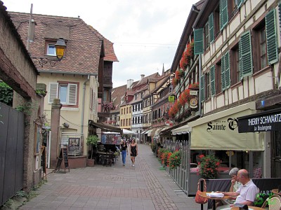 Я только хочу добавить, что Эгисхайм входит в винную дорогу Эльзаса и это нельзя не заметить. Везде винные бутики, винарни, бутылки и бочки и все аппетитно пробуют вино или сидят с запотевшими бокальчиками. Я напомнил Марине, что во Франции разрешено водителям до 0.5 промилле и в результате мы тоже попробовали местного рислинга, вкусно. |