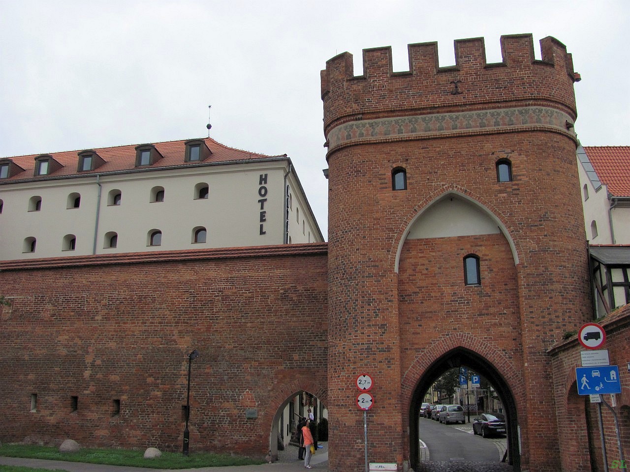 Перетаскали нужные на ночь вещи, послали детям СМС, чтобы они своим ходом шли к отелю "около круглой башни" и поехали туда на свою парковку, она как раз во дворе около башни. Ехать за детьми я отказался, несмотря на недовольство Штурмана, подумал, что так получится быстрее, дело то уже к вечеру и надо было думать об ужине. С небольшой заминкой (ребята не сразу нашли эту круглую башню, которая на самом деле оказалась не совсем круглой, скорее квадратной :)) мы встретились и пошли подбирать себе место для ужина. Если бы я не выбирал нам ресторан заранее, с помощью Трипадвайзера, то скорее всего ужин бы получился более удачный :). Но я читал, читал и получалось по отзывам, что самое лучшее место - это корчма все в том же "нашем" отеле Spichrz.
