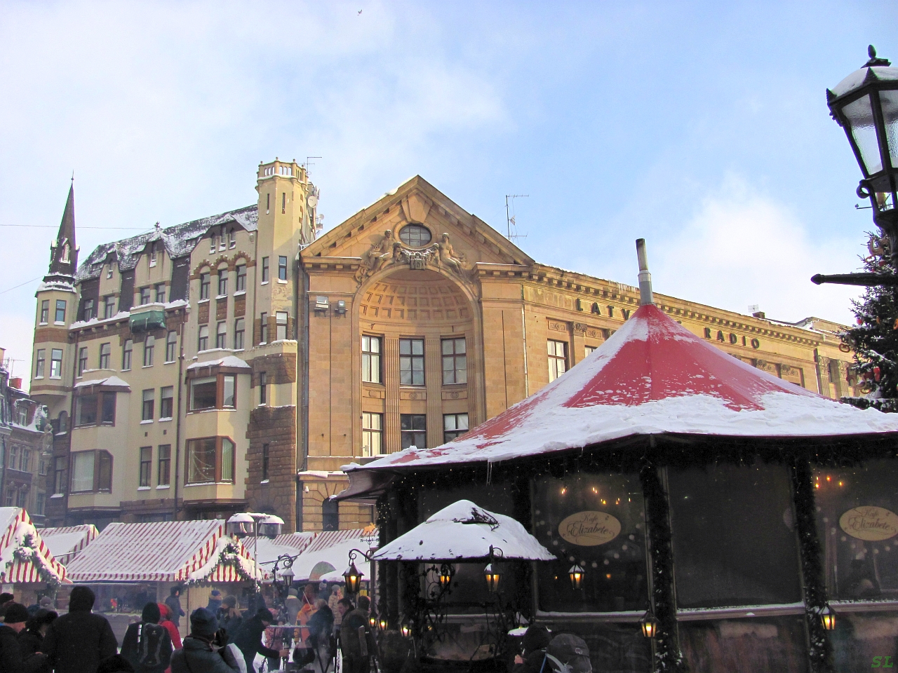 Потом Ратушная площадь, на которой всеобщее внимание своей нарядностью привлекает дом Черноголовых. Дом был построен в 1334-и году как место для празднований и собраний рижских обществ и назывался первоначально Новым Домом. Фамилия Черноголовых произошла от покровителя их братства - св. Маврикия, его изображение с чёрным лицом видно на воротах дома справа. В братство принимали холостых купцов -космополитов, которые на самом деле являлись членами тайного ордена, превосходно владевшими герметическим языком мифов и легенд. Братство пришло на смену разгромленному ливонскому ордену тамплиеров и первоначально снимало в аренду один этаж дома. Дом приобрел свой настоящий вид в 17-м веке, и построен в стиле североевропейского маньеризма, его предыдущего изображения не сохранилось. Но при этом утверждают, что фасад дома Черноголовых, вроде как, несет в себе зашифрованное на герметическом языке послание, как это стыкуется, я не знаю. Во время ВОВ он был практически полностью разрушен и в 1948-м году, после признания его восстановления нецелесообразным, дом был разобран. Но в 1996-м году началось его восстановление и реконструкция (читаем -новое строительство), которое было закончено в 2000-м году к празднованию 800-летия Риги. С этим нарядно-праздничным домом сильно диссонируют стоящие рядом памятник латышским стрелкам и фоном ему черный музей оккупации Латвии (период оккупации 1941-1990 гг.). Вот между собой они гармонируют хорошо. Заходить в музей не захотелось, настроение было не то. Здание ратуши тоже восстановлено практически с нуля, потому что оно было практически полностью разрушено в 1941-м году. До этого ратушу разрушали войска Петра в начале 18-го века, и кто-то во время войны с ливонским орденом в конце 13-го. Восстановление в нынешний вид (новое строительство) закончилось в 2003-м году и сейчас там заседает Рижская дума. |