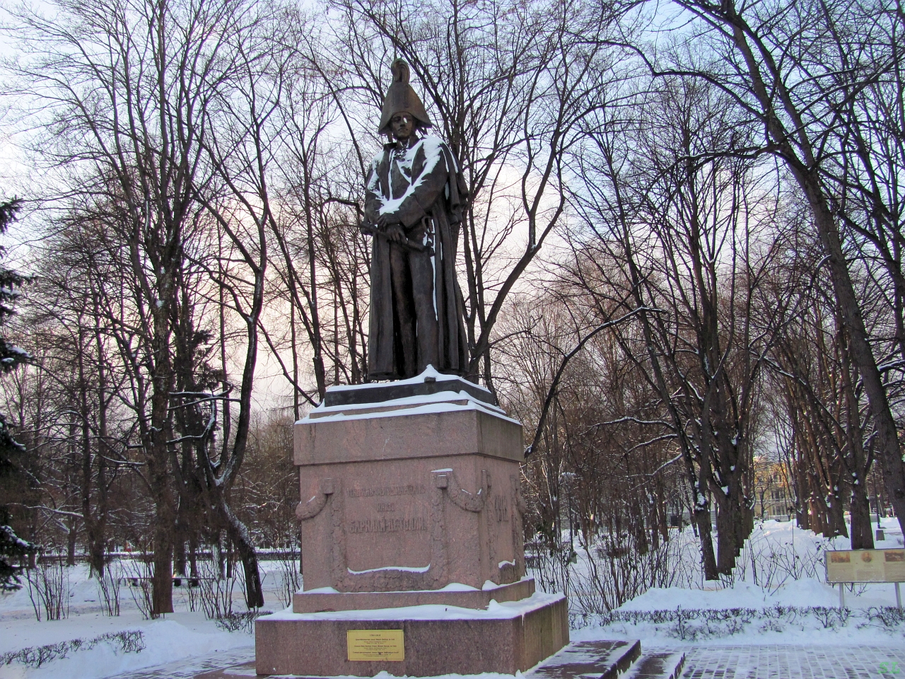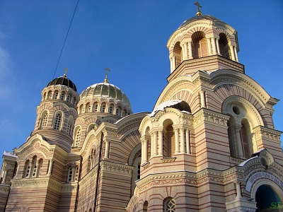 И потом мы ушли из старого города, потому что хотелось посмотреть на нарядный православный Христорождественский собор, на него мы обратили внимание еще вчера, когда в снежной каше проезжали мимо. Марина ещё предложила остановиться и погулять, но я не соблазнился возможностью зарыть машину в платный сугроб. Путь наш проходил через площадь Памятника Свободы мимо собственно памятника. Он был установлен еще в 1935-м году и чудесным образом пережил советское время. У подножия собора жил своей жизнью очередной сказочный городок, на сей раз заячий. Не должны, вроде, зайцы (или кролики) мерзнуть, но визуально казалось, что им холодно, уж очень они хотели быть похожими на клубочки. А пойдем посмотрим, что за Наполеон там стоит? Оказалось, что это совсем наоборот, Барклай де Толли. История памятника тоже интересна. Его поставили на этом месте в 1913-м году, к столетию освобождения России от Наполеона. Но во время русско-немецкой войны он был эвакуирован и как-то потерялся. И только в 2001-м году восстановлен на собственные средства предпринимателя Евгений Гомберга и установлен здесь "временно", как бы на пробу. Потом он был освящен русской церковью и это вызвало какие-то опасения латвийцев. Но все равно, памятник в результате закрепился на этом месте. Собор Рождества Христова (в некоторых источниках у него такое название) чрезвычайно фотогеничен и на фоне снега и сосен смотрится очень гармонично. У собора, несмотря на его недлинную историю (строительство было задумано в 1874-м году, в этом активно участвовал Александр II и закончено в 1884-м году). На него покушались немцы в период Первой Мировой войны - спилили кресты и переоборудовали в кирху. Храм потом был восстановлен. После 1960-го года на храм ополчилась советская власть - кресты были вновь спилены с целью использования меди, но оказалось, что они были только обшиты тонкими листами, а внутри деревянными. Видимо обидевшись, власть превратила храм в учреждение, были возведены межэтажные перекрытия, внизу открыто кафе и планетарий. И в 1991-м году было начато очередное восстановление храма, которое не закончено и по сей день. По-крайней мере, заметно, что не все купола еще позолочены. Думаю, что когда-нибудь будут все, если не задумано так как сейчас. Собственно говоря, реставрация и восстановление - это постоянные спутники всех исторически важных сооружений. Внутри собора фотографировать было совсем нельзя, на полу лежали елки и шла активная подготовка и украшение к предстоящему православному Рождеству. Недалеко от собора Латвийская художественная академия, перед входом которой установлен "символ женской сущности". По-крайней мере, на нём примерно так написано. Местная Венера Виллендорфская была здесь установлена в 2010-м году, это дипломная работа выпускницы академии. Правда, эта Венера 21-го века значительно превышает размерами своего 11 сантиметрового прототипа. |