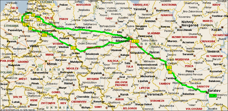 | Driving Distance: 3673.3 километров Time: 6 дни, 10 часы, 57 минуты |