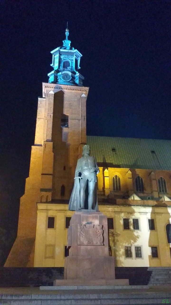 Город Гнезно мы сначала объехали почти весь вокруг центра, такой маршрут въезда приготовил наш навигатор, и нам постоянно справа был виден его главный объект - собор Успения Пресвятой Девы Марии. Он доминирует над всей окрестностью, и его наличие уже оправдывает наш приезд сюда.