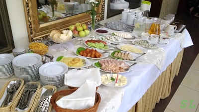 За день проехали разгонные 515 км. 28-го июля, в субботу Утром, конечно же, по идее надо скорее попасть на границу, но и завтрак пропускать не хотелось... Успеем. |