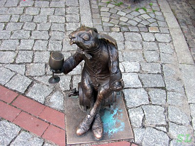 И вот еще обнаружили в разных местах пару забавных кроликов - строителя и нашего брата, дегустатора. Их тут и еще есть, но нам больше они не попались... Кролики побольше вроцлавских гномиков, но тоже хорошо попрятались. Потом я прочитал, что эти забавные зверьки отмечают собой королевский путь (вспомним, что здесь короновали польских королей). А слово "кролик" (królik) созвучно слову "король" (król). И всего их будет 15. Сколько уже есть, неизвестно. И ещё на просторах интернета удалось найти и приватизировать карту расположения этих кроликов. Так что, если кому-то будет надо и он будет достаточно внимателен, то найдет карту гнезнинских кроликов здесь :). |
