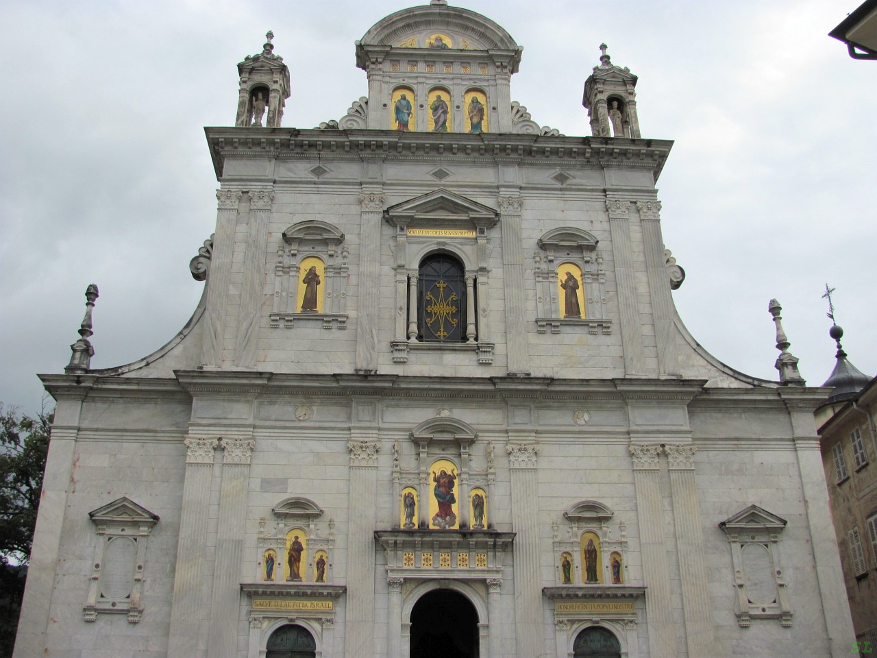 Сначала была интересная церковь Сан Гауденцио (Chiesa Collegiata di San Gaudenzio). Церковь была построена в XIII веке, потом перестраивалась и со стороны она не очень похожа на культовое сооружение, поскольку она на холме над площадью и ее колокольню снизу не видно. |