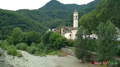 Недалеко от нашего дома главная деревенская церковь, т.е. мы живем практически в центре итальянской деревни. Конечно же, пошли туда, тем более что оттуда ожидались отличные виды на озеро и нависающую над деревней скалу с еще одной церковью Santuario della Madonna del Sasso на ней (туда тоже бы надо съездить, но когда... Думаю, оттуда вид на озеро еще лучше).