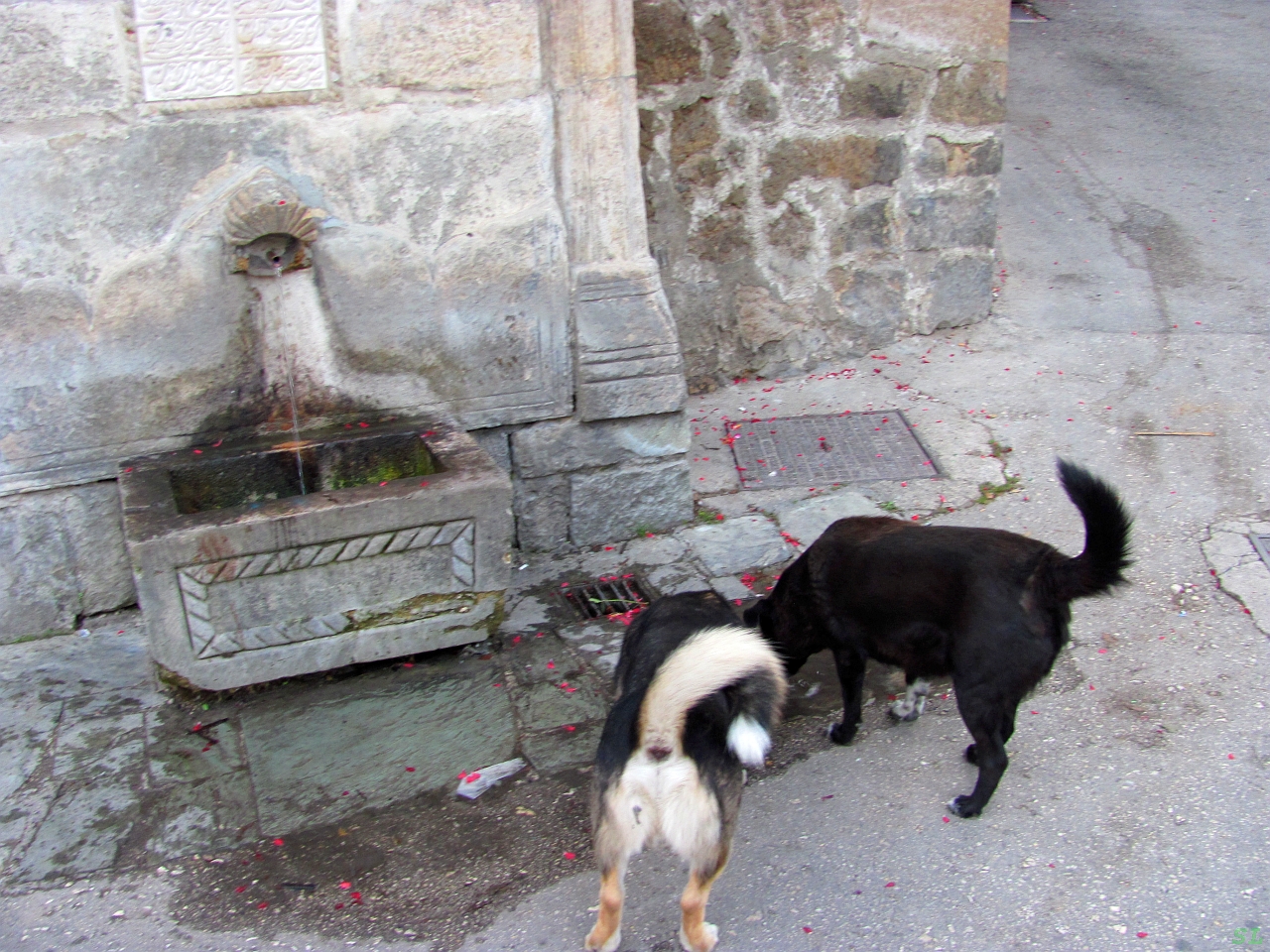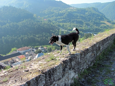 Но, слава Богу, сейчас тут никаких артистов не было, кроме опять же собак. Одна из них подбежала к нам и весело сопровождала, бегая прямо по краю отвесных крепостных стен. Яйце - город собак :) Насмотрелись и назад. Еще можно было бы пройтись по городской стене от одних ворот до других, пешком сходить к еще одной, если не основной городской достопримечательности - Пливскому водопаду по тому самому пешеходному мосту со столбиками. Но мы на сегодня Маринин резерв на пешие прогулки выбрали, поэтому решили по стенам уже не лазить, а к водопаду заехать на машине по пути на выезд из города. Это как раз на ту самую площадку с киосками, где мы вчера толкались, пытаясь проехать по пешеходному мосту.