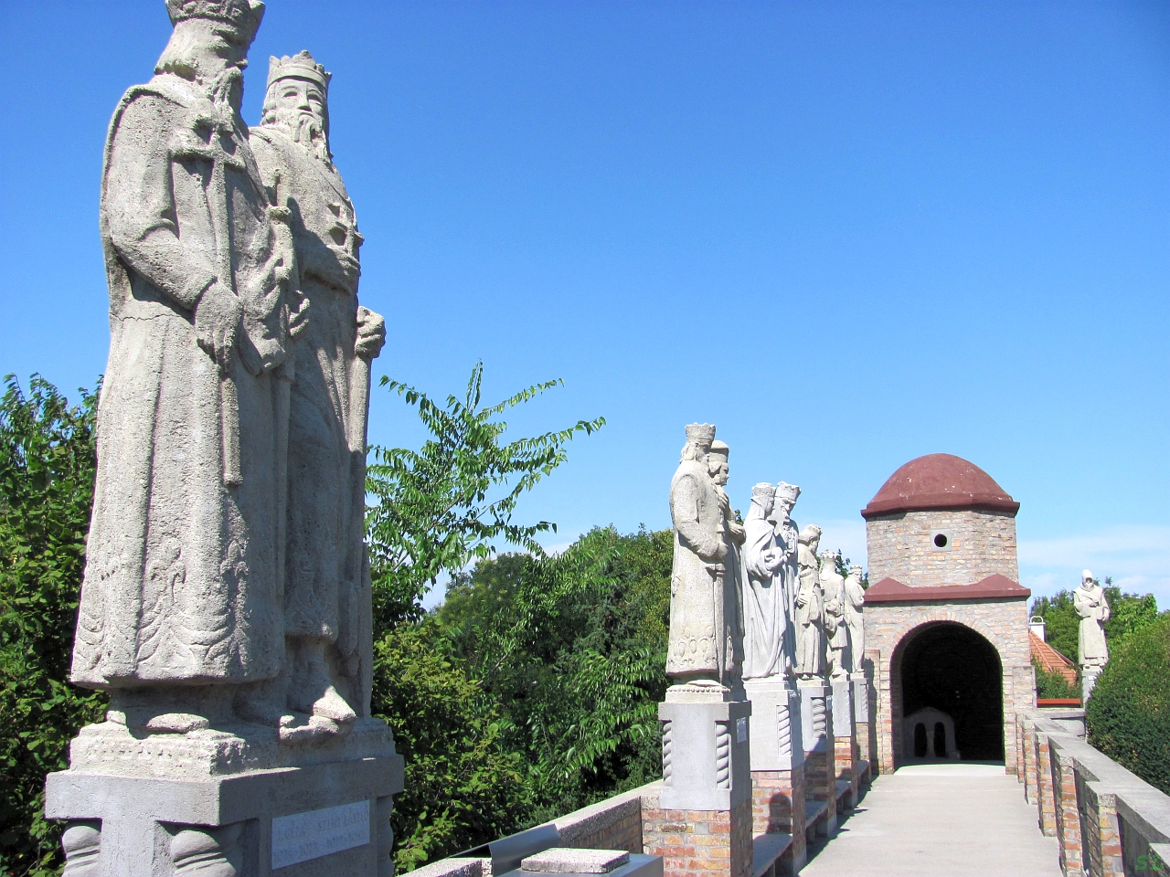 Замковый двор с внутренним садом и фонтаном охраняют легендарные герои Венгрии и