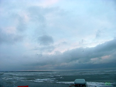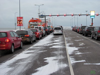 И после прощального утреннего похода в баню (а как же) и потом плотного (тоже прощального) завтрака мы расселись уже каждый в свою машину и покатили на паром. Там опять все очень четко, погрузились и поплыли. Только сегодня залив был в льдинах, дул сильный ветер и паром ощутимо качало. Но доплыли, попрощались, и дальше каждая семья поехала своей дорогой, мы направо - в Ригу, Комаровы налево - в Таллинн. И судя по всему, Николаю таки хватило бензина доехать до материковой заправки, несмотря на моё коварство. |