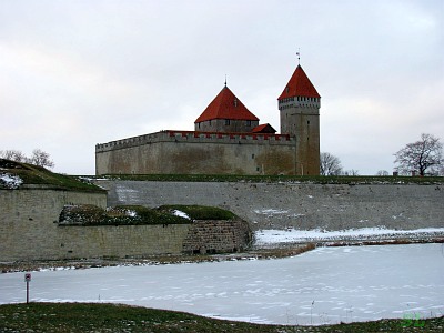 Но в общем-то, не особо и хотелось узнавать, что это за здания и зачем они, мы просто неспешно брели себе от одного к другому, пока не вышли к замку, отгородившемуся от острова своим рвом и крепостным валом, все как положено. Из-за рва выглядывает Пороховая башня (15-й век) |