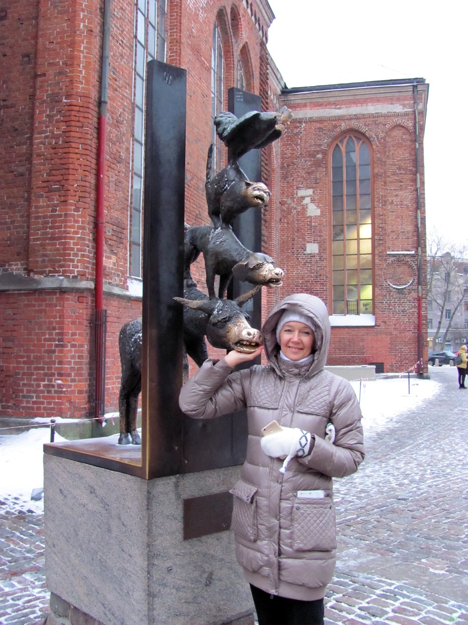 А оттуда мы начали потихоньку возвращаться назад, к старому городу, посматривая по сторонам и вспоминая нашу прогулку два года назад. Собор Рождества Христова сегодня смотрелся не так сказочно, каким он нам показал себя тогда, ему явно не хватает солнца и снега. Как и Памятнику Свободы (1935 год) не разобранному при советской власти на куски только благодаря известному скульптору В.И.Мухиной. |