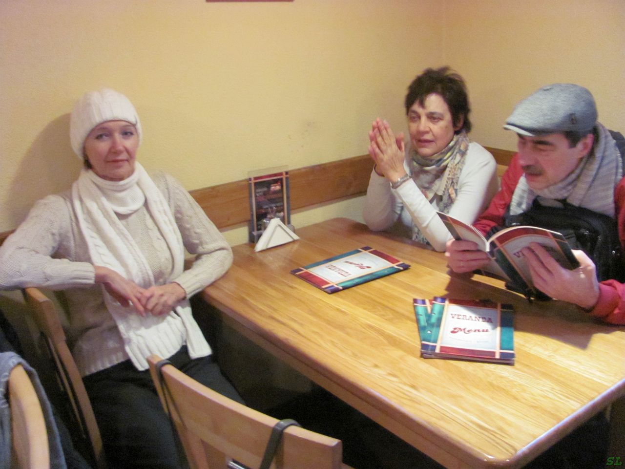 Никаких пропусков, на входе девушка, дает желающим ключик от шкафчика с резинкой на руку. А если не нужен шкафчик, то просто заходи. На мой вопрос - а как со временем, как считают, кто контролирует, и могу ли я, например, утром придти и потом еще вечером - она только плечами пожала - приходите и купайтесь, когда открыто. Сам комплекс небольшой: сначала зал с электрокамином и двумя банями - хамам, довольно теплый, и сауна, временами ничего так, а из первого зала выход в другой с бассейном. Тут же две небольшие ванны-джакузи и детская плескалка. Лучше всего тут, конечно, бассейн. 25 метров, достаточно широкий с плавательными дорожками даже со стартовыми тумбами, так что основное время мы проводили там и наплавались в удовольствие. В сауну стеклянная дверь и через нее видно, что там на лавке в числе остальных потели и наши Комаровы. Привет и с Новым Годом! И так как у них номер побольше нашего, вечером мы были званы в гости в их номер на посиделки. За полгода, прошедшие с последней нашей встречи много воды утекло, было о чем порассказывать и чего послушать. Засиделись за полночь. Кстати, вот чем запомнился отель - там между первым и вторым этажами на просторной площадке лестничного пролета устроена большая общедоступная библиотека, и в ней в шкафах в свободном доступе чего только нет, практически вся мировая и советская литература советского же издания, и понятно, что на русском языке. Даже полное собрание сочинений В.И.Ленина... Так вот там практически никого никогда не бывало, зато стояли столики и пуфики для чтения. Эти пуфики частично переместились в наши номера, не сидеть же всем на кровати рядком во время ужинов или застольных бесед. Удобно на пуфиках :). Фотографий таких посиделок мы не делали, хотя они были почти каждый вечер всего дальнейшего нашего пребывания в Прибалтике. Как-то так сложилось, что нам все время было о чем поговорить, даже кроме путешествий. И это понятно, возрасты у нас близкие, про детей интересно пообсуждать, какие они у нас замечательные, про пенсии и индексации, про зубные протезы и артериальное давление :)...